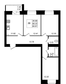 Продаётся 3 комнатная квартира 199 — 69.81 кв. м. Расположена на 7 этаже. Дом построен из силикатного кирпича.