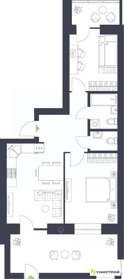 Бульвар, приватные дворы, комфортная переменная этажность, стильные холлы. В проекте представлено большое разнообразие планировочных решений: студии, европланировки и полноценные 1-, 2-, 3-комнатные. Для ценителей частных пространств мы подготовили миксы загородных домов и городских форматов: квартиры с личным входом с улицы, коллекционные варианты с террасами, а также мастер-спальни с ванными, гардеробными и эксклюзивные варианты на последних этажах с видом на зелёные окрестности района.
