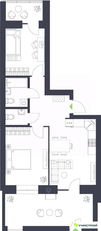 Бульвар, приватные дворы, комфортная переменная этажность, стильные холлы. В проекте представлено большое разнообразие планировочных решений: студии, европланировки и полноценные 1-, 2-, 3-комнатные. Для ценителей частных пространств мы подготовили миксы загородных домов и городских форматов: квартиры с личным входом с улицы, коллекционные варианты с террасами, а также мастер-спальни с ванными, гардеробными и эксклюзивные варианты на последних этажах с видом на зелёные окрестности района.