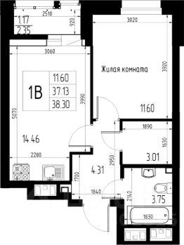 Продаётся 1-комнатная квартира 50 общей площадью 38.3 кв.м., на 12 этаже 13 этажного дома.