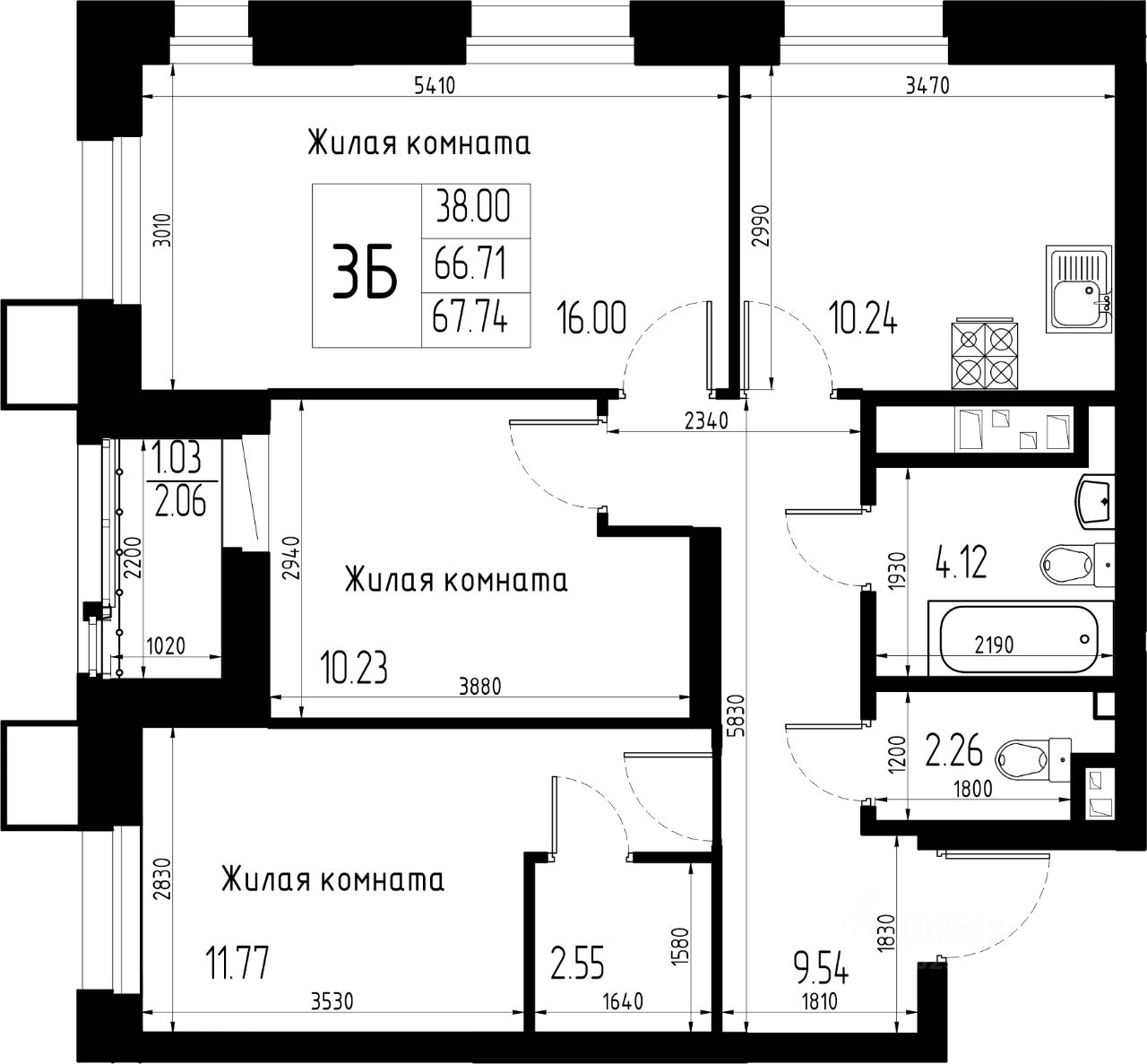 Продаётся 3-комнатная квартира 134 общей площадью 67.74 кв.м., на 4 этаже 13 этажного дома.