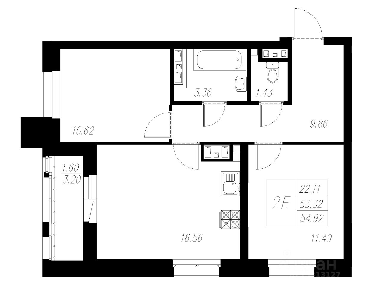 Продаётся 2-комнатная квартира 153 общей площадью 54.92 кв.м., на 8 этаже 13 этажного дома.