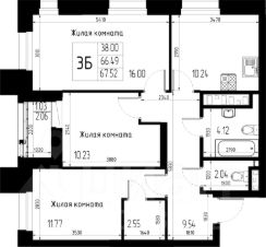Продаётся 3-комнатная квартира 169 общей площадью 67.52 кв.м., на 11 этаже 13 этажного дома.