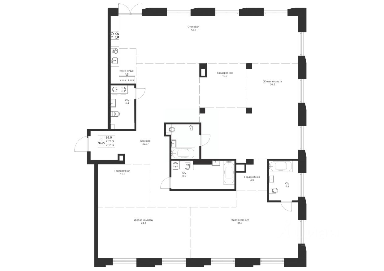 Продается апартамент 3А площадью 231,86 кв.м на 1 этаже в жилой резиденции премиум-класса ЖК "Мифы", созданная для ценителей роскошной и приватной жизни в городе. Резиденция из 4-х корпусов, объединенная галереей с респектабельным лобби и общественным пространством.