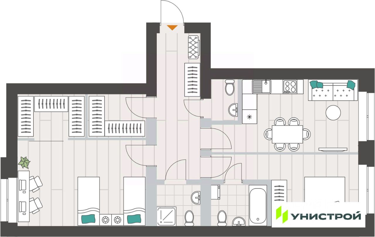 Унистрой—федеральная девелоперская компания «Унистрой», реализующая проекты в Казани, республиках Татарстан и Башкортостан, Ленинградской и Самарской областях. Компания работает на рынке с 1996 года и специализируется на развитии жилой и коммерческой недв...