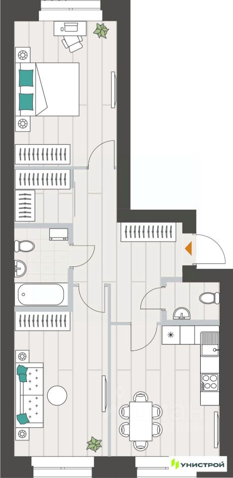Унистрой—федеральная девелоперская компания «Унистрой», реализующая проекты в Казани, республиках Татарстан и Башкортостан, Ленинградской и Самарской областях. Компания работает на рынке с 1996 года и специализируется на развитии жилой и коммерческой недв...