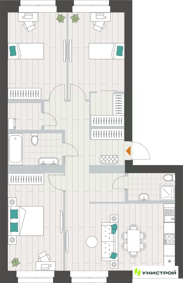Унистрой—федеральная девелоперская компания «Унистрой», реализующая проекты в Казани, республиках Татарстан и Башкортостан, Ленинградской и Самарской областях. Компания работает на рынке с 1996 года и специализируется на развитии жилой и коммерческой недв...