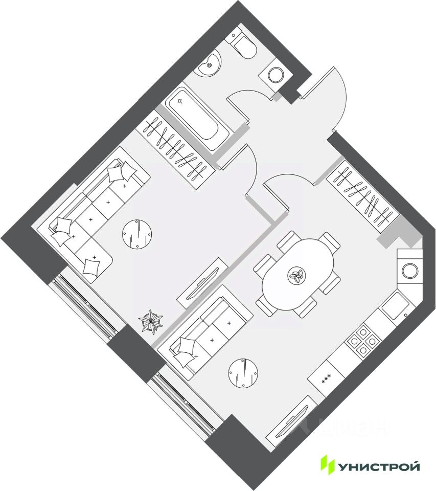 Жилой проект задает тренд на инклюзивную среду. Ту, в которой есть возможности для активной жизни и отдыха в пределах "Уникума". Проект отвечает ключевым запросам современного жителя большого города. Комфорт. Эстетика. И всё необходимое для успешной жизни рядом.
