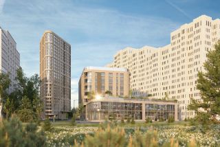 На первых этажах коммерческие помещения для магазинов, кофеен и офисов, выполненные в едином стиле.