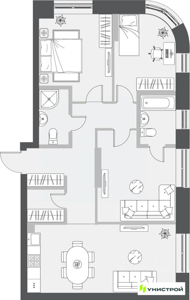 Жилой проект задает тренд на инклюзивную среду. Ту, в которой есть возможности для активной жизни и отдыха в пределах "Уникума". Проект отвечает ключевым запросам современного жителя большого города. Комфорт. Эстетика. И всё необходимое для успешной жизни рядом.