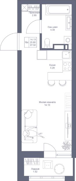 Уютная и продуманная 1-комнатная квартира с просторной евро-гостиной. Кухонная зона расположена в нише, что позволяет скрыть рабочие процессы. Из гостиной открывается выход на лоджию, где можно организовать дополнительное место отдыха. В прихожей предусмотрена ниша под гардеробную, чтобы вам было удобно хранить свои вещи.