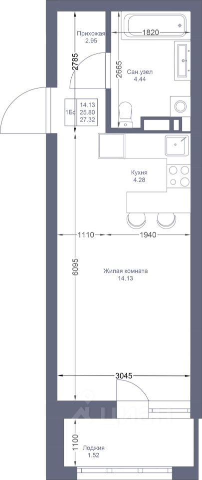 Продается студия-комнатная квартира 362 площадью 27,32 кв.м на 3 этаже 22-ти этажного дома проекта "Мой Ритм" от "Ак Барс Дом". Купить квартиру можно в ипотеку со ставкой от 4,5%.