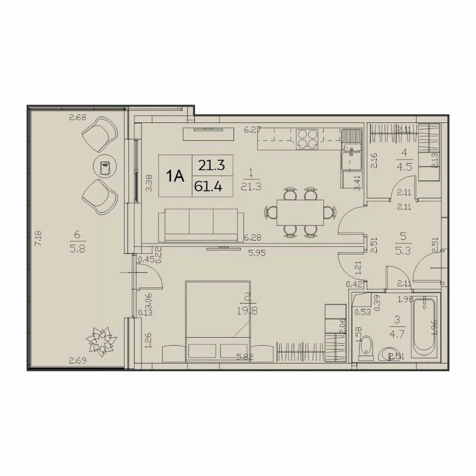 Общая площадь61,4 м²