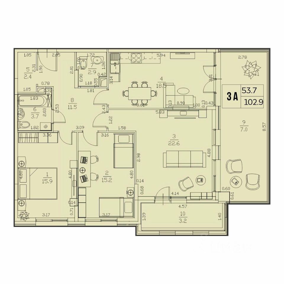 Общая площадь102,9 м²