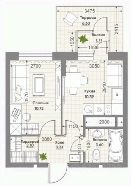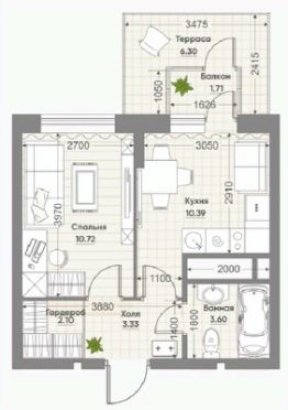 1- комнатная квартира 32.58 м² на 1 этаже в СТРОЯЩЕМСЯ доме повышенной комфортности Жилого комплекса "Зимний сад".