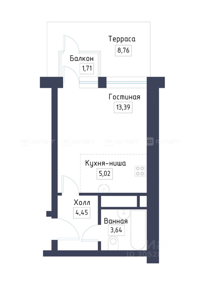 1- комнатная квартира 29.64 м² на 1 этаже в доме повышенной комфортности Жилого комплекса "Зимний сад".