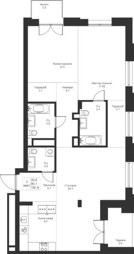 Продается 2-комнатная квартира 61 площадью 100,42 кв.м на 5 этаже в жилой резиденции премиум-класса ЖК "Мифы", созданная для ценителей роскошной и приватной жизни в городе. Резиденция из 4-х корпусов, объединенная галереей с респектабельным лобби и общественным пространством.
