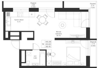 Продается 1-комнатная квартира 301 площадью 49,26 кв.м на 11 этаже в строящемся доме проекта "Мой Ритм" компании "Ак Барс Дом".