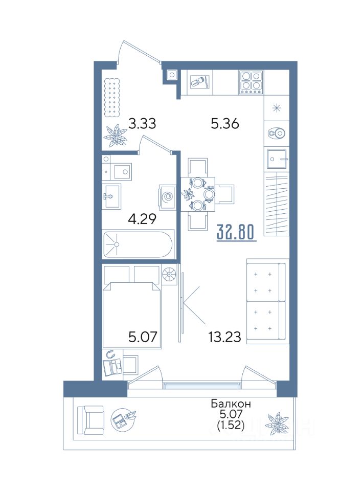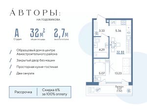 Продается студия 65 в образцовом доме "Авторы на Годовикова" в центре Авиастроительного района. Квартира на 6 этаже площадью 32.8 м², кухней-гостиной и высотой потолков 2.7 м. Квартира сдается в предчистовой отделке со стяжкой полов, предоставляя полную свободу для ваших предпочтений в дизайне.
