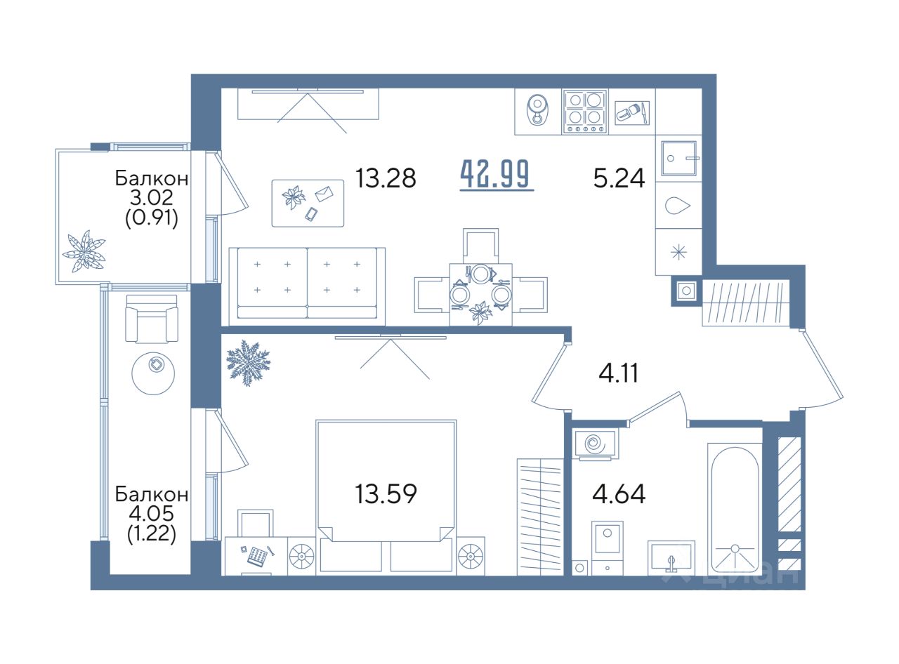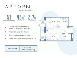 Продается 1-к квартира 69 в образцовом доме "Авторы на Годовикова" в центре Авиастроительного района. Квартира на 6 этаже площадью 42.99 м², кухней-гостиной и высотой потолков 2.7 м. Квартира сдается в предчистовой отделке со стяжкой полов, предоставляя полную свободу для ваших предпочтений в дизайне.