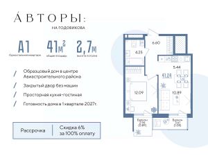 Возможно приобретение со скидкой 6% при полной оплате, в рассрочку с первым взносом 30%, а также оформление ипотеки.