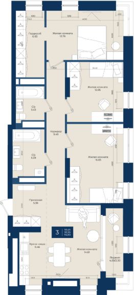 Жилой комплекс "NOVA" Квартира 288 общей площадью 94,6 м2 на 17 этаже.