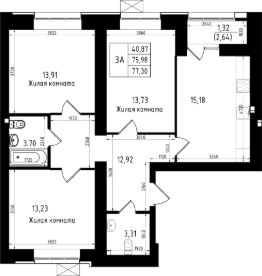Продается 3 комнатная квартира 203 общей площадью: 77.3 кв.м. на 10 этаже.