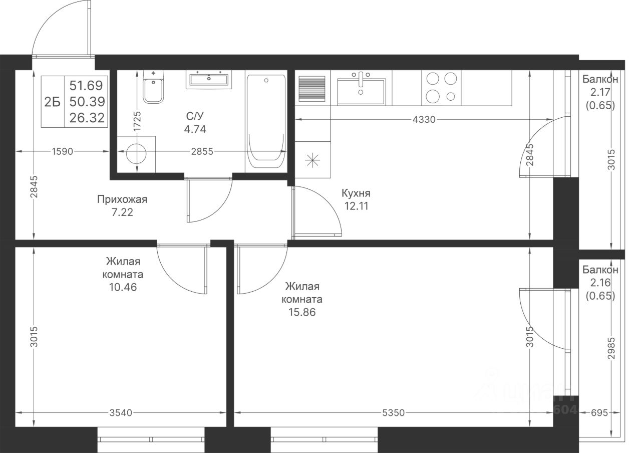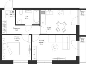 Продается 2-комнатная квартира 256 площадью 51,69 кв.м на 6 этаже в строящемся доме проекта "Мой Ритм" компании "Ак Барс Дом".