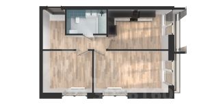 Для хранения вещей в коридоре есть место под шкаф-купе, а удачные пропорции жилых комнат позволят выгодно использовать пространство при расстановке мебели.