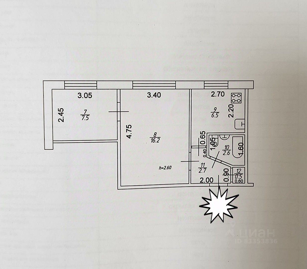 Общая площaдь 36 кв.м., жилaя 23,7 кв.м. пpoстоpная куxня 6,5 кв.м.