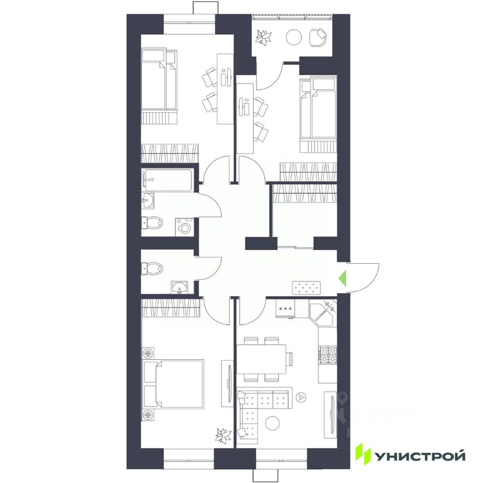 Бульвар, приватные дворы, комфортная переменная этажность, стильные холлы. В проекте представлено большое разнообразие планировочных решений: студии, европланировки и полноценные 1-, 2-, 3-комнатные. Для ценителей частных пространств мы подготовили миксы загородных домов и городских форматов: квартиры с личным входом с улицы, коллекционные варианты с террасами, а также мастер-спальни с ванными, гардеробными и эксклюзивные варианты на последних этажах с видом на зелёные окрестности района.