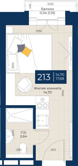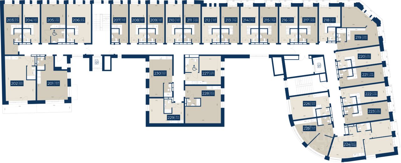 Vertical Boutique, Апартаменты 213 общей площадью 17,68 м2 на 2 этаже.
