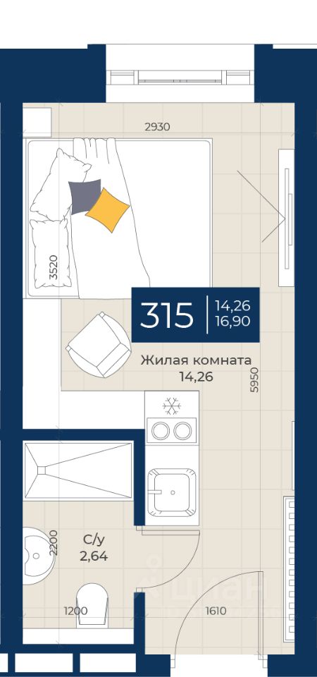 Vertical Boutique, Апартаменты 315 общей площадью 16,9 м2 на 3 этаже.