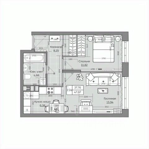 Общая площадь47,07 м²