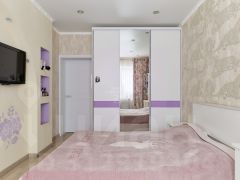 Ремонт: выполнен в стиле "евро", с использованием дорогих материалов (керамогранит, ламинат, натяжные потолки, дизайнерская подсветка). Квартира готова к проживанию, всё продумано до мелочей.
