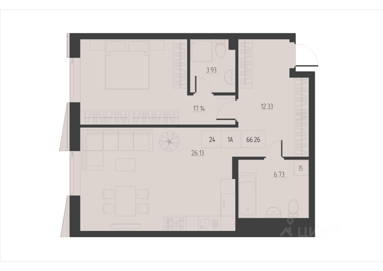 1 комнатная квартира площадью 66.88 кв.м. на 4 этаже в строящемся жилом комплексе премиум-класса "Академик".