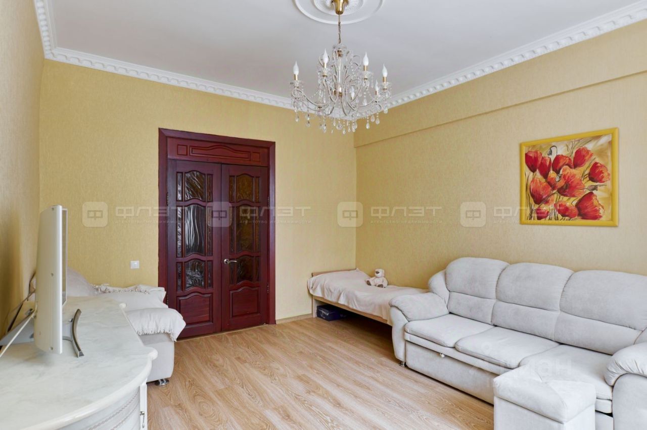 Объект 109506 Центр города !Продается прекрасная квартира в центре Казани . Обкомовская сталинка с высокими потолками , идеальной шумоизоляцией , интеллигентными соседями . Развитая инфраструктура : магазины , аптеки , транспортная развязка - все в шаговой доступности . Тихий двор и места для парковки -дополнительный плюс нашей квартиры . Чистый и просторный подъезд . В квартире заменены все коммуникации , проводка , пластиковые окна , батареи с вентелями . Несмотря на первый этаж , квартира очень теплая в зимнее время и , благодаря очень толстым стенам , сохраняет прохладу жарким летом . Двери из массива дерева гармонируют с дизайном квартиры в классическом стиле .