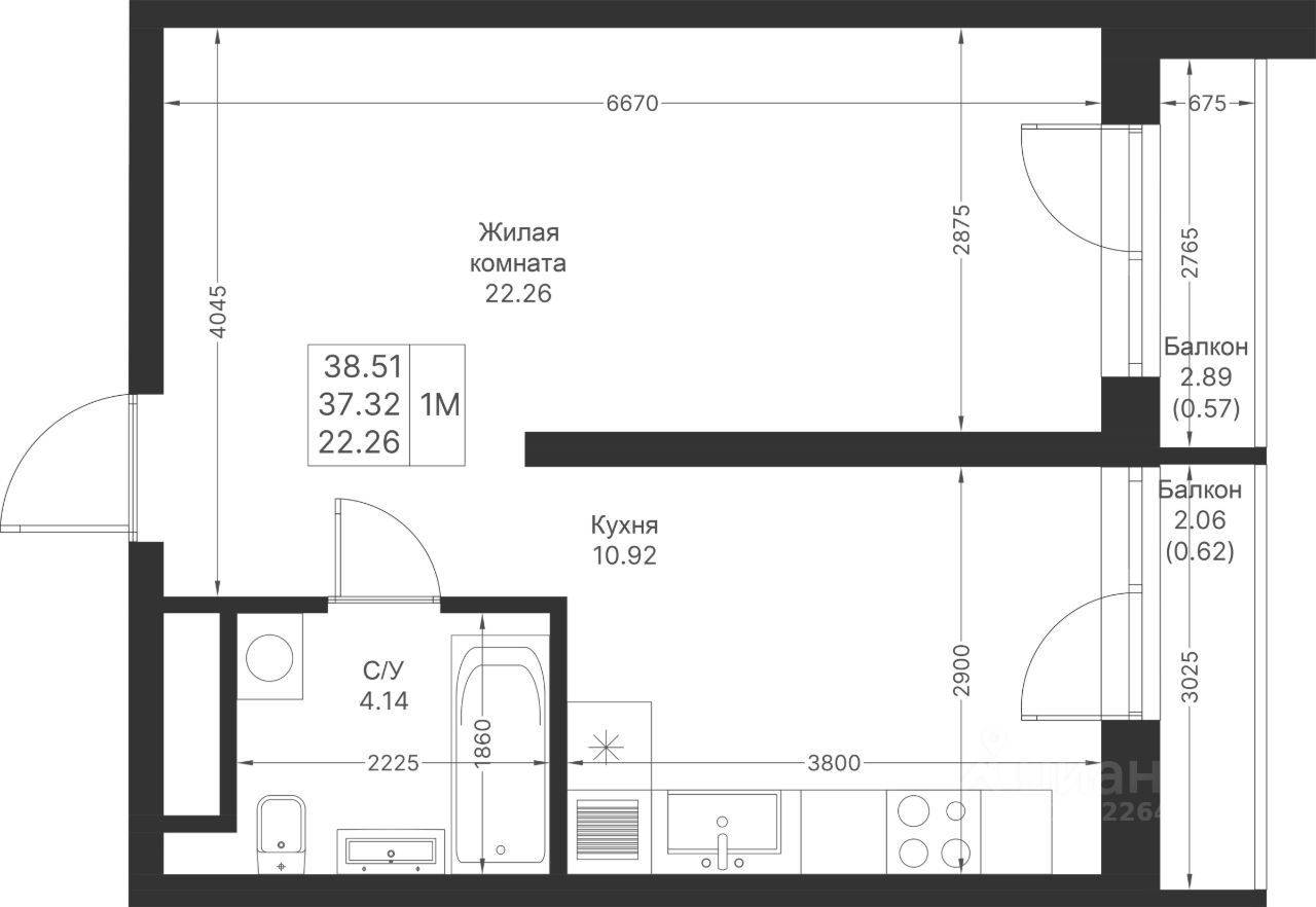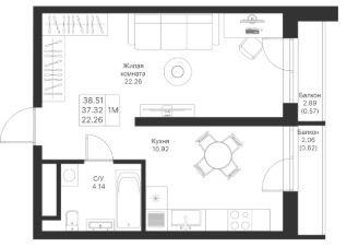 Продается 1-комнатная квартира 622 площадью 38,51 кв.м на 3 этаже в строящемся доме проекта "Мой Ритм" компании "Ак Барс Дом".