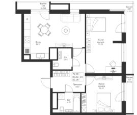 Продается 2-комнатная квартира 710 площадью 72,76 кв.м на 11 этаже в строящемся доме проекта "Мой Ритм" компании "Ак Барс Дом".