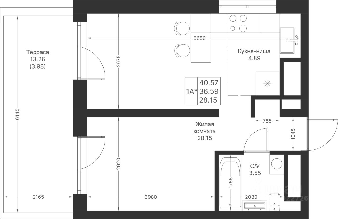 Продается 1-комнатная квартира 255 площадью 40,57 кв.м на 4 этаже в строящемся доме проекта "Мой Ритм" компании "Ак Барс Дом".