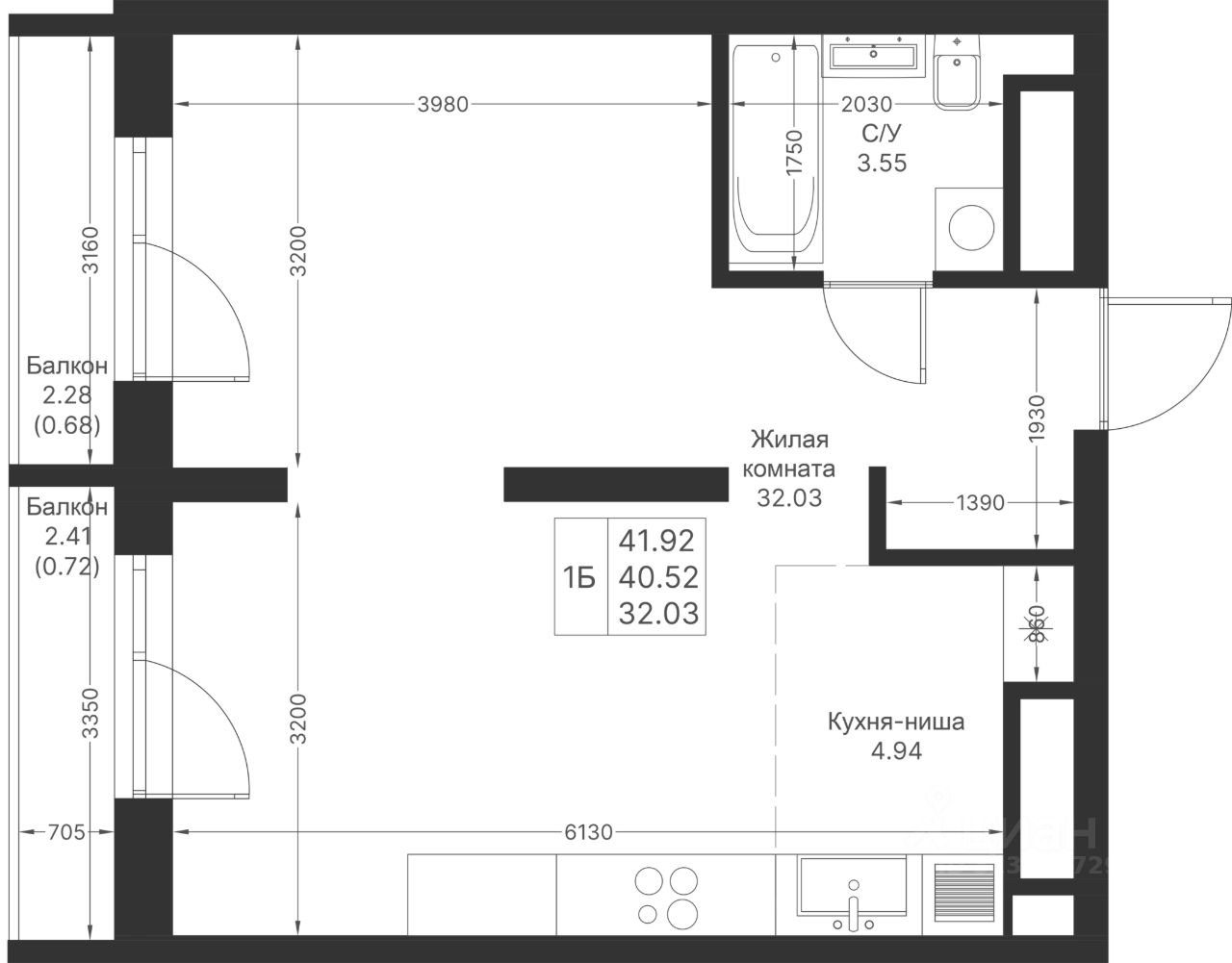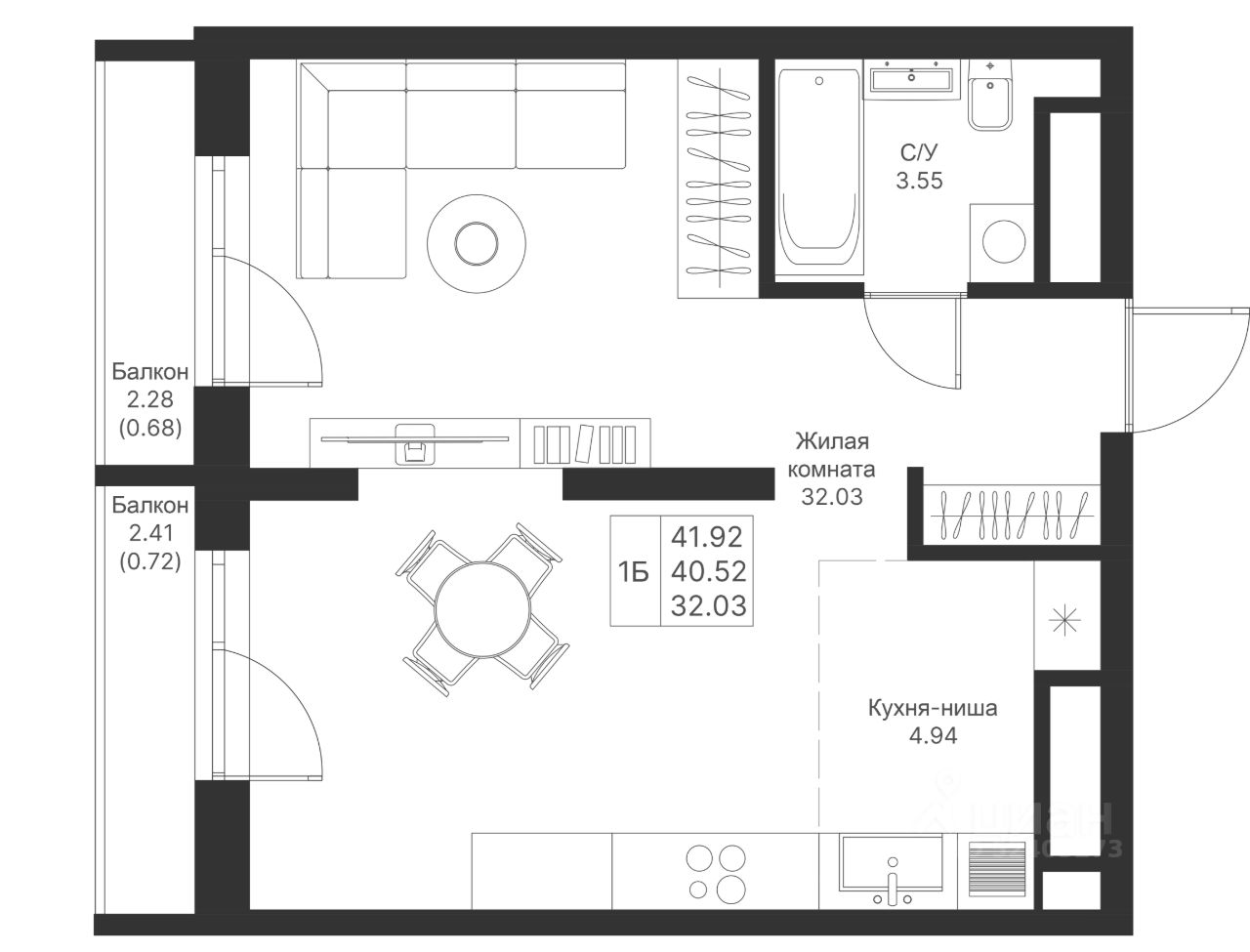 Продается 1-комнатная квартира  260 площадью 41,92 кв.м на 5 этаже в строящемся доме проекта "Мой Ритм" компании "Ак Барс Дом".