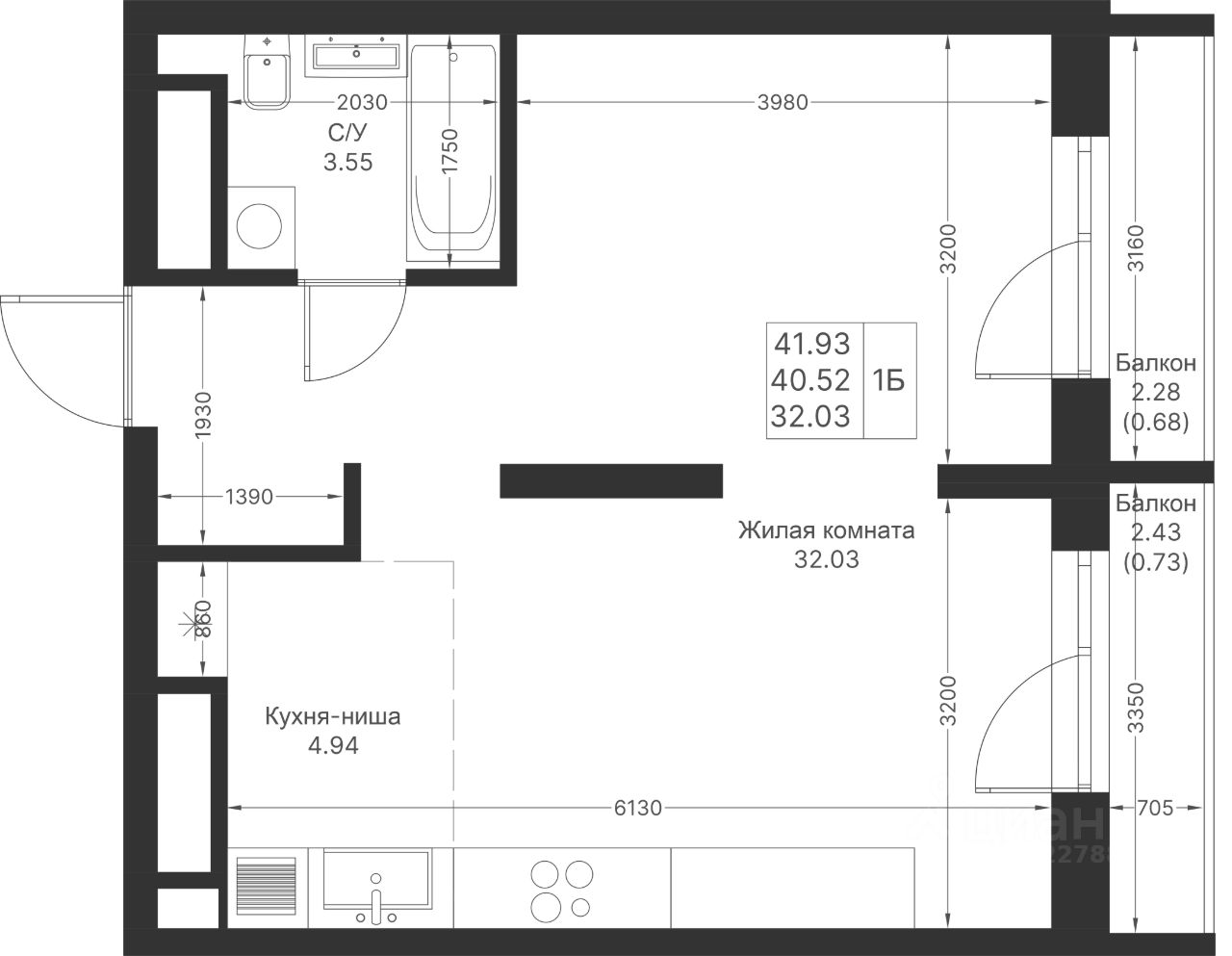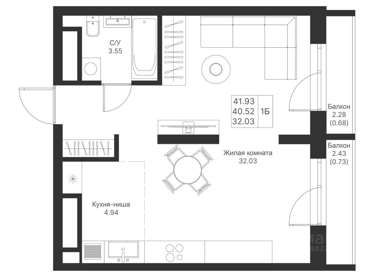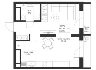 Продается 1-комнатная квартира 560 площадью 41,93 кв.м на 10 этаже в строящемся доме проекта "Мой Ритм" компании "Ак Барс Дом".