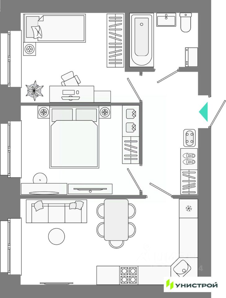 Представлен широкий выбор планировок — от студий до просторных семейных квартир. Доступны варианты с террасами, мастер-спальнями и гардеробными. Во всех квартирах выполнена качественная предчистовая отделка.