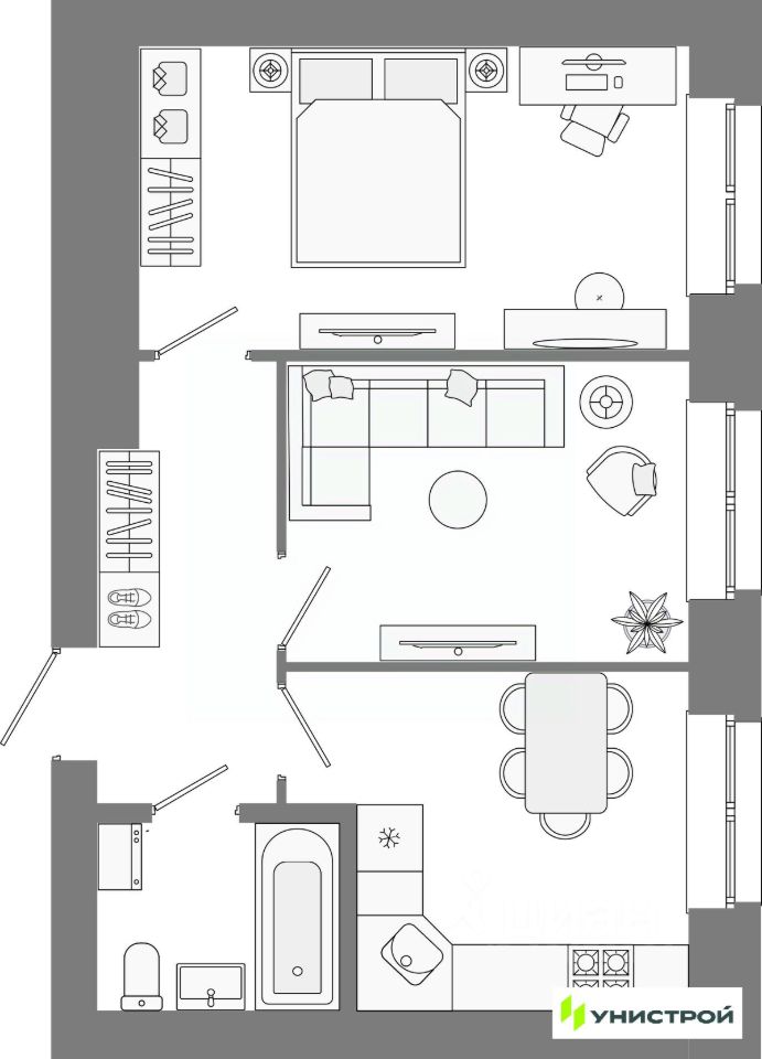 Унистрой—федеральная девелоперская компания «Унистрой», реализующая проекты в Казани, республиках Татарстан и Башкортостан, Ленинградской и Самарской областях. Компания работает на рынке с 1996 года и специализируется на развитии жилой и коммерческой недв...