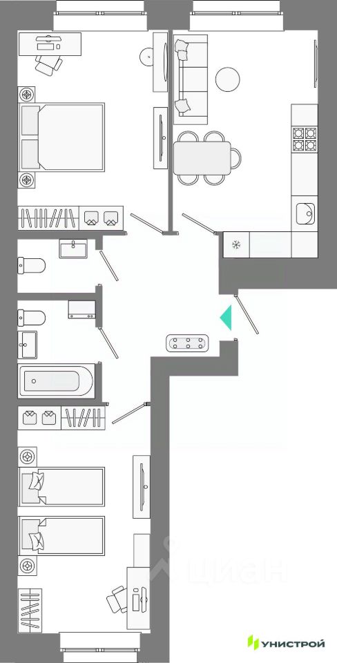 - Квартиры от студий до многокомнатных