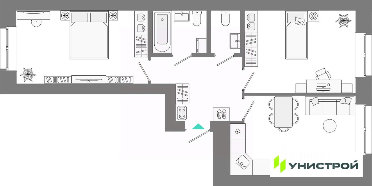 - Квартиры от студий до многокомнатных