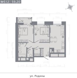 2-комн. квартира, 59,2 м²