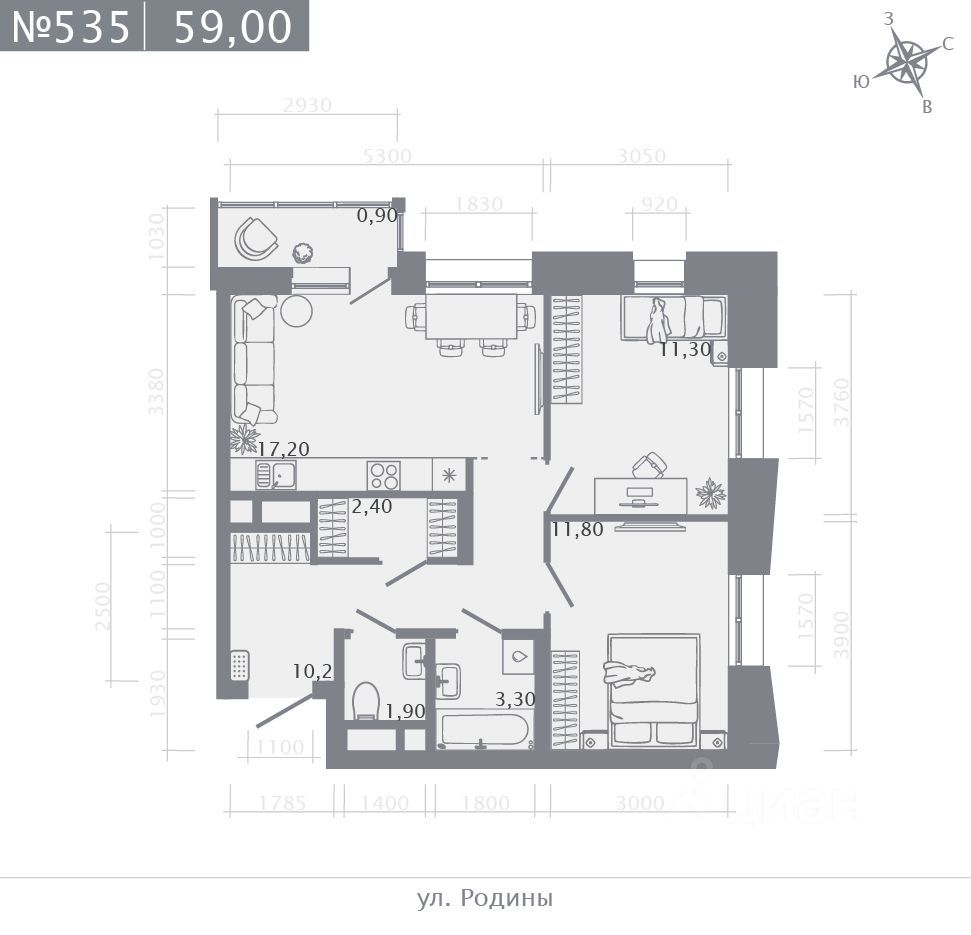 59 м²