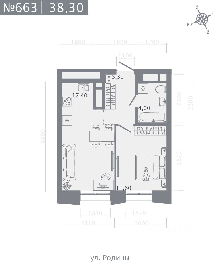 Продаётся 1-комнатная квартира в строящемся доме (Корпус 2), срок сдачи: I-кв. 2029, общей площадью 38.3 кв.м., на 16 этаже.