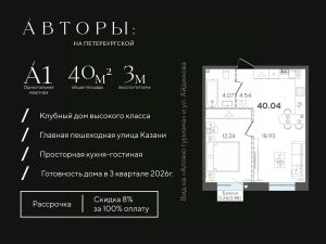 Продается 1-к квартира 31 в клубном доме "Авторы на Петербургской" на главной пешеходной улице Казани. Квартира на 3 этаже площадью 40,04 м², высотой потолков 3 м. Квартира сдается в свободной планировке, предоставляя полную свободу для ваших предпочтений в дизайне и возможность подстроить пространство под ваши жизненные ценности.